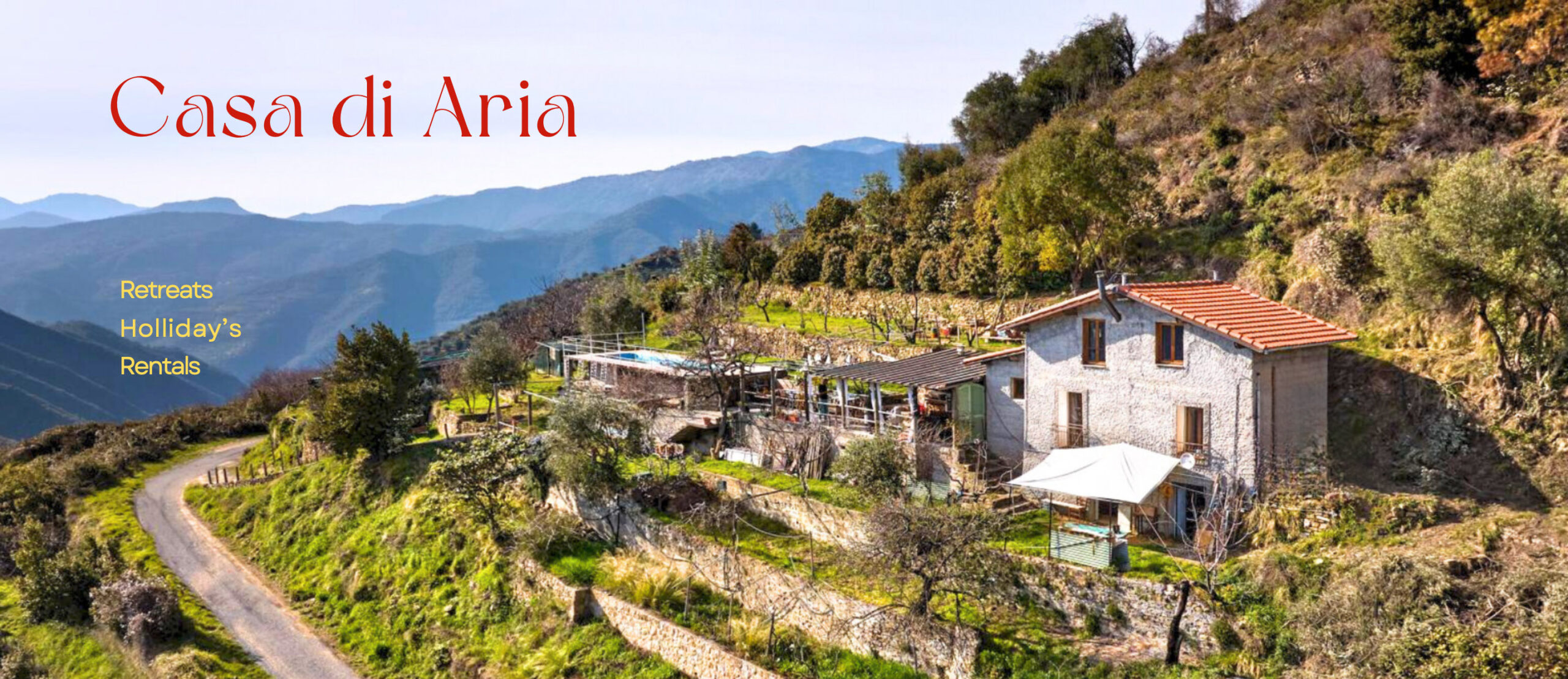Ons paradijsje ‘Casa di Aria’ gelegen op 600 meter hoogte in het achterland van de Ligurische Bloemenrivièra, is omgeven door eeuwenoude bossen en omringt door middeleeuwse dorpjes, en ligt op ongeveer een uur van San Remo en Monaco.